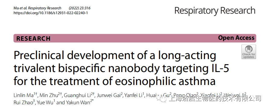 近期,由UG环球视讯生物主导开发的长效IL5纳米抗体,可用于治疗嗜酸性粒细胞性相关疾病,包括嗜酸性哮喘(EOS-Asthma)、高嗜酸性粒细胞综合征(HES)和嗜酸性肉芽性多血管炎(EGPA)等。相关研究成果发表于《Respiratory Research》杂志,题为“Preclinical development of a long-acting trivalent bispecifc nanobody targeting IL-5 for the treatment of eosinophilic asthma”(IF=7.162)。本文通讯作者为上海UG环球视讯生物万亚坤博士。