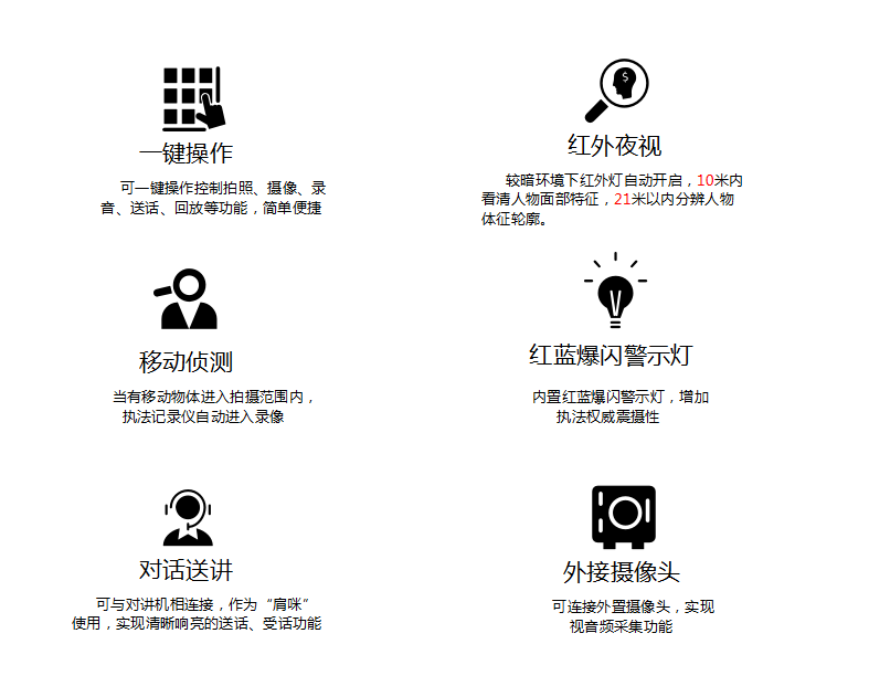 森林舞会官网DSJ-200F 执法仪(法院/政府/城管)拍摄像素高达5000万,广角镜头137,拍摄画面精细而全面,大容量电池支持陆续在工作12小时不断电